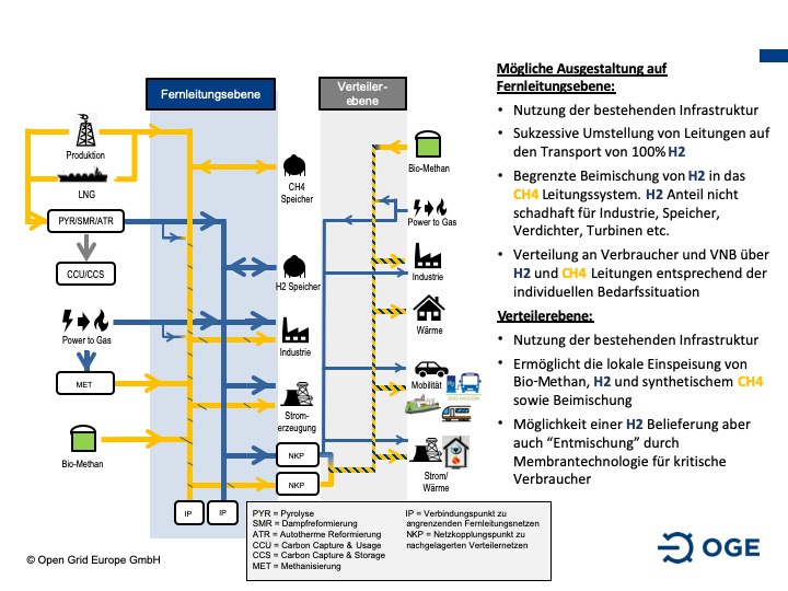 Ein solche Wasserstoff-Beimischung für die an das Fernleitungsnetz angeschlossenen sei für Industriekunden hingegen nicht praktikabel. Industrieprozesse benötigten reine Gase, also entweder reinen Wasserstoff oder reines Erdgas, stellt Ronnacker klar. Zudem gebe es im europäischen Verbundsystem für den Gastransport einheitliche Standards für die Reinheit von Erdgas: Deutschland ist ein Transitland für die Lieferung von russischem Gas, das z.B. nach Frankreich, Italien und in die Niederlande fließt. Alle diese Abnehmer vertrauten auf eine gleichbleibende Qualität und eine hohe Versorgungssicherheit. Daher müsse das Fernleitung-Wasserstoffnetz technisch getrennt vom Erdgasnetz betrieben werden.